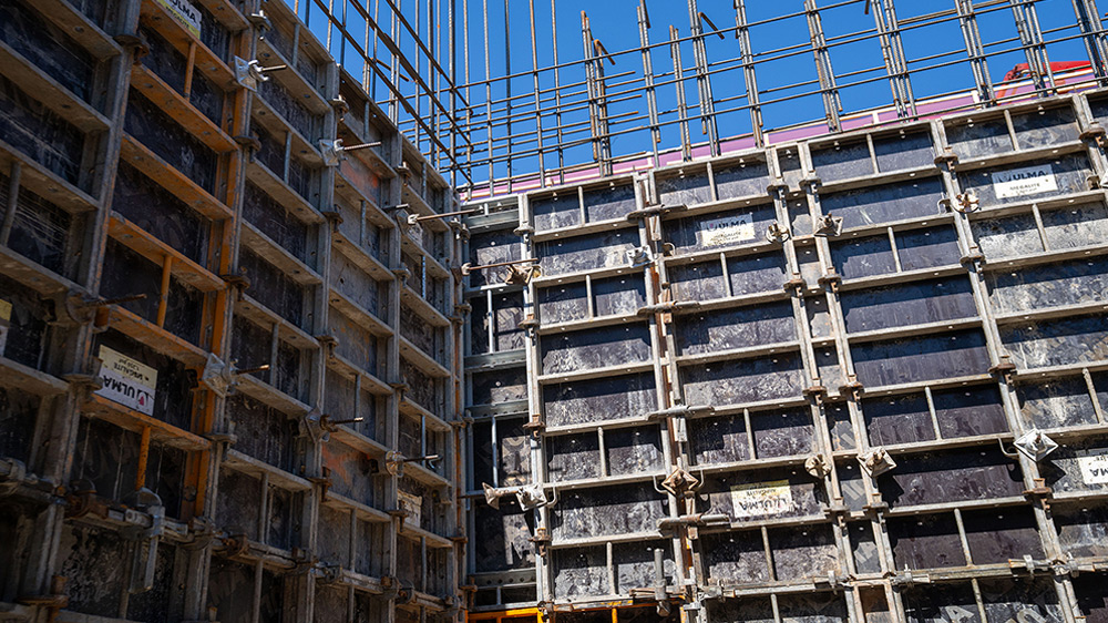 Dada la complejidad de la estructura, que incorpora rampas y distintos niveles de apeo, se ha planificado el suministro de material conforme a las necesidades de cada fase, optimizando tiempos y recursos. Asimismo, el sistema trepante RKS ha permitido el izado de los paneles de moldaje sin necesidad de desmontar la estructura del muro, aportando precisión y continuidad al proceso constructivo.