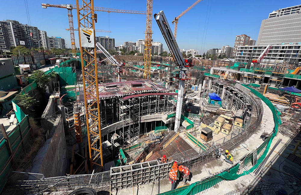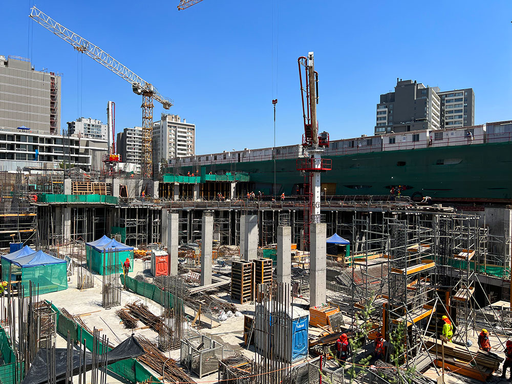 En la construcción del edificio residencial y la Placa Comercial, ULMA ha aplicado una solución integral e innovadora de sistemas de moldajes para muros, pilares, moldajes para losas y apuntalamientos y obtener así la máxima productividad en cada fase de la obra.