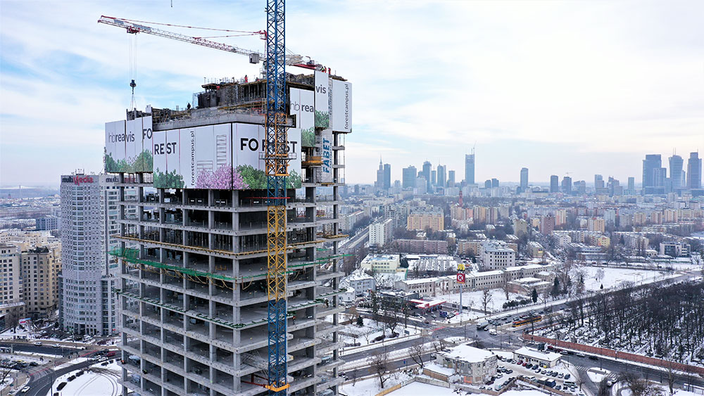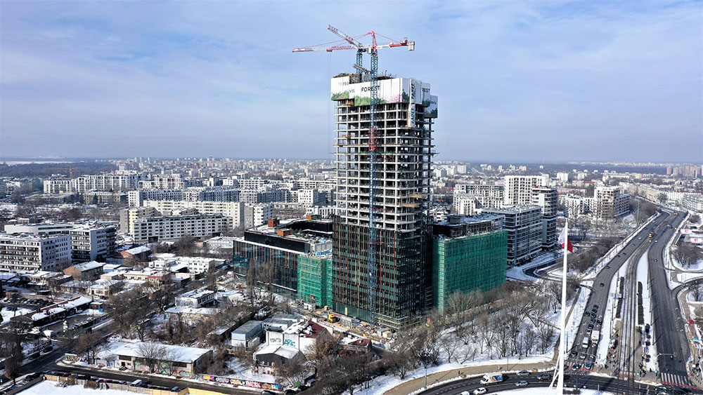 El complejo de oficinas Forest va a aportar a la ciudad de Varsovia 78.000 m² de superficie de alquiler, incluidos los espacios dedicados a cafeterías y locales de servicios. Está compuesto por una torre de 120 metros y otros edificios adyacentes, de 6 y 8 plantas.