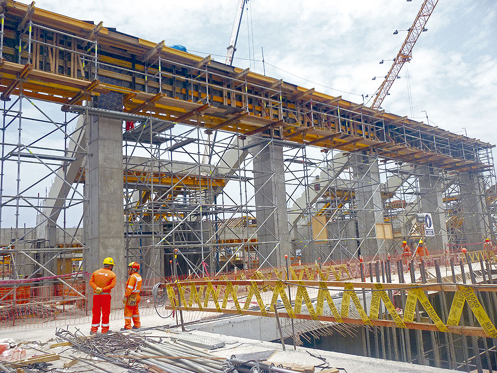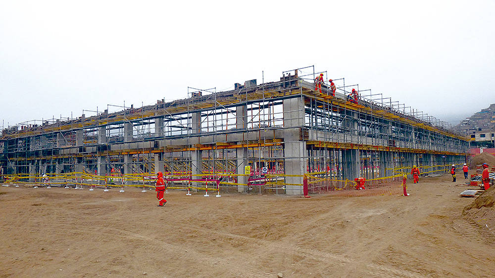 Las columnas de 14 metros que sirven como base para el Coliseo de la Villa Deportiva del Callao, se ejecutaron mediante el encofrado modular ORMA, mientras que para el hormigonado de muros el encofrado modular ligero COMAIN fue el sistema elegido. En cuanto al apeo de losas y graderíos, la Cimbra BRIO fue la mejor opción y el andamio BRIO fue utilizado para facilitar el acceso a las diferentes áreas y garantizar espacios de trabajo seguros. En total, se suministraron más de mil toneladas en andamios y encofrados.